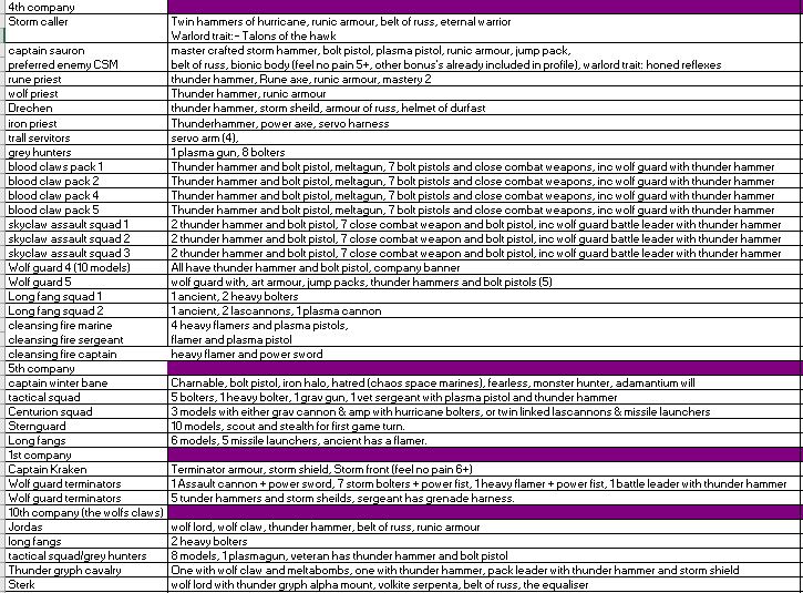 Where possible I have included army and wargear lists for the assembled forces. (Those armies I do not own I cannot be fully sure what they contain. If I am provided with army lists I will include them in a future post.)