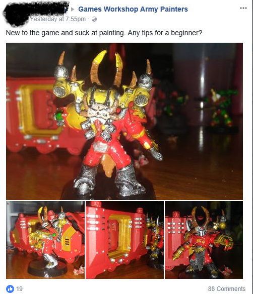 In our example, the comments range from “thin your paints” to “watch Warhammer TV”. All are good advice but don’t address the problem in a helpful way. By reading through the comments, we find out